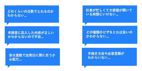 ビザ申請代行サービスをご利用いただくことで、ビザ取得に関わる時間の短縮と様々な不安の解消ができ、安心してお仕事や旅の準備に集中いただけます。