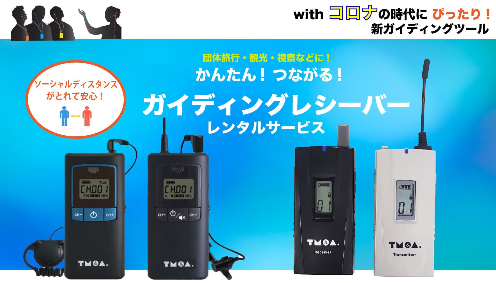 送信機と複数の受信機(電池・イヤホン等付属品あり)をセットでレンタルいたします。国内ではご希望の場所へ配送、または国内主要空港でもお受け取り、返却いただけます。海外ではお客様ご指定のホテル等でお受取り、返却いただけます。